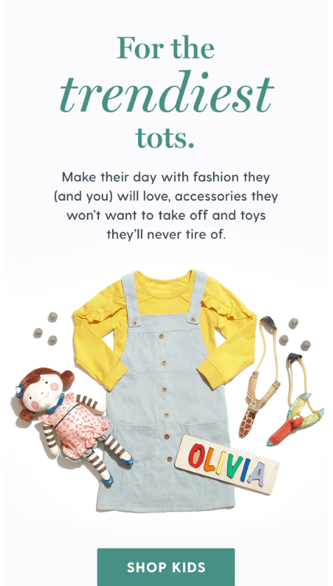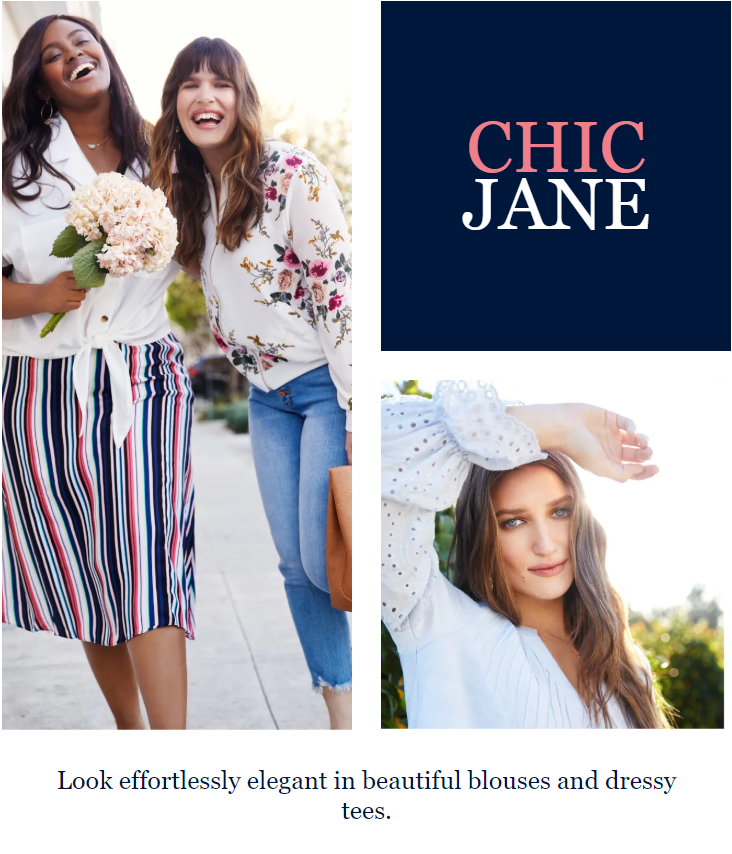 With Jane’s goal to keep customers on-budget and in style, this campaign encouraged customers to shop affordable and fashionable items for spring. I created the copy for assets including emails, video scripts, landing pages, and more.